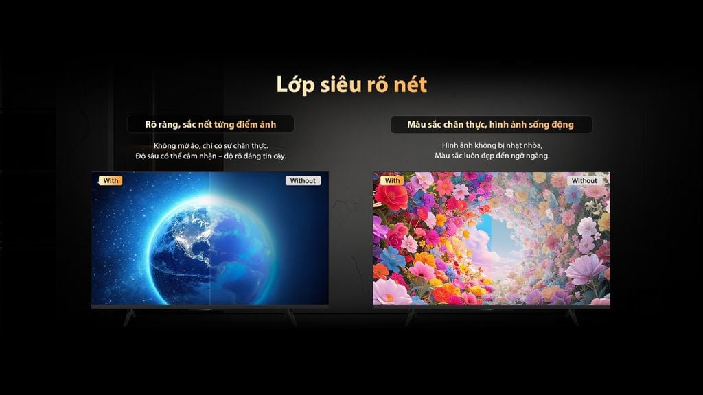 | Tính năng | Hệ điều hành Google TV Điều Khiển Giọng nói không cần remote Màn hình tràn viền 4.0 HDR 10 , Game mode Lọc ánh sáng xanh Chống Nhấp Nháy Tìm kiếm điều khiển TV |
